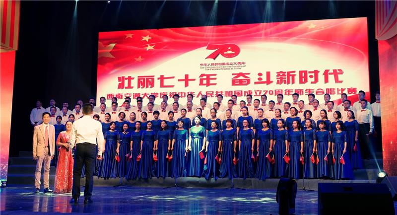 9月29日,由西南交大主办的“壮丽七十年 奋斗新时代”师生合唱比赛在九里校区大学生会堂隆重举行。我公司员工参加了比赛,用《共和国之恋》、《走向复兴》唱响了对新中国的祝福和热爱,表达了对祖国的情与恋。
