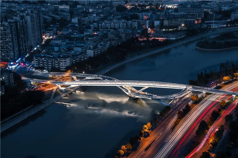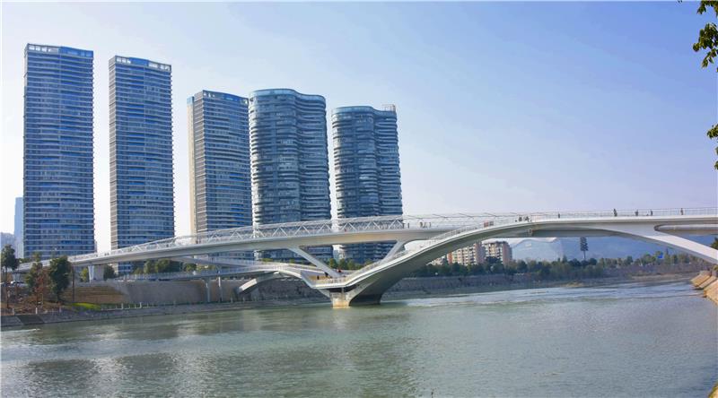 大桥位于成都高新南区,跨越锦江、红星路南延线与江滩公园、世纪城会展中心相连,也是连接锦江绿道两岸的重要慢行交通桥梁。