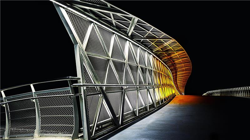 所有照明灯具均采用了节能环保的LED光源,同时加入了智能控制系统,能实现光色和亮度的控制。设计中充分考虑照明灯具对白天景观的影响,在结构设计时将所有照明灯具进行隐藏,真正做到了见光不见灯的效果,保证了白天桥梁景观的完整性。