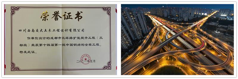 近日,西南交大土木工程设计有限公司设计的三环路扩能提升工程(娇子立交桥)及云龙湾大桥荣获中国钢结构金奖。
