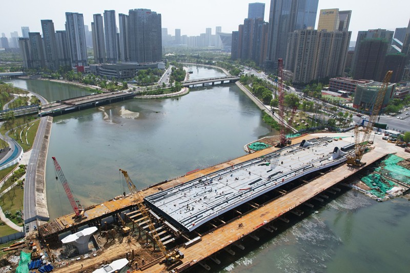 近日,由我公司设计的锦尚大桥,提前4个月顺利完成钢箱梁合龙,加速了成都交子公园交通配套体系完善。完成合龙的锦尚大桥已初现雏形,建成后将成为公园城市示范区的靓丽风景和幸福宜居城市空间的组成部分。