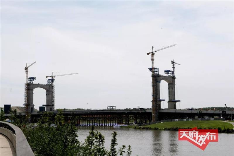 目前,大桥主体结构基本完成,大桥在新区美景的衬托下,呈现出令人惊叹的壮观美。